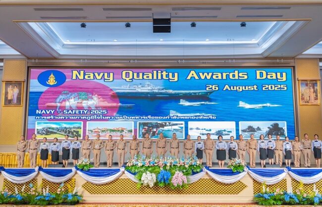 วันนี้ (26 ส.ค.68) เวลา 09.30 น. พล.ร.อ.จิรพล ว่องวิทย์ ผู้บัญชาการทหารเรือ (ผบ.ทร.) เป็นประธานในพิธีมอบรางวัล และเปิดกิจกรรมวันรางวัลคุณภาพกองทัพเรือ (Navy Quality Awards Day : NQA) ประจำปีงบประมาณ 2568 ณ ห้องเจ้าพระยา หอประชุมกองทัพเรือ เขตบางกอกใหญ่ กรุงเทพฯ
