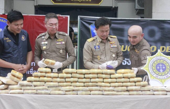 โดยเมื่อวันที่ 29 ส.ค.68 เวลาประมาณ 00.10 น. เจ้าหน้าที่ตำรวจ สภ.บางบัวทอง ได้รับแจ้งจาก สายข่าวว่าจะมีการส่งมอบยาเสพติด บริเวณสะพานกลับรถถนนหมายเลข 9 ต.ละหาร อ.บางบัวทอง จ.นนทบุรี โดยรถที่นำยาเสพติดมาส่ง เป็นรถกระบะ ยี่ห้อโตโยต้า รุ่นสปอร์ตไลต์เดอร์ สีเทา จึงได้บูรณาการประกอบกำลังงานป้องกันปราบปรามและงานสืบสวน วางแผนเฝ้าทำการจับกุม จนถึงเวลาประมาณ 05.40 น. ได้มีรถลักษณะตรงกับที่สายข่าวแจ้งมาพบว่าจอดบริเวณใต้สะพานกลับรถถนนหมายเลข 9 เจ้าหน้าที่ตำรวจจึงได้แสดงตัวเข้าทำการตรวจสอบ โดยพบนายศักดิ์ (นามสมมติ) อายุ 48 ปี ภูมิลำเนาอยู่ที่ อ.สองพี่น้อง จ.สุพรรณบุรีผู้เป็นคนขับรถคันดังกล่าว เจ้าหน้าที่จึงได้ให้นายศักดิ์ฯ นำเจ้าหน้าที่ตำรวจชุดจับกุมตรวจสอบภายในรถยนต์คันดังกล่าว พบยาเสพติดให้โทษประเภท 1 (ยาบ้า) 8 ถุงใหญ่ (สีดำ) ประมาณ 3,200,000 เม็ด