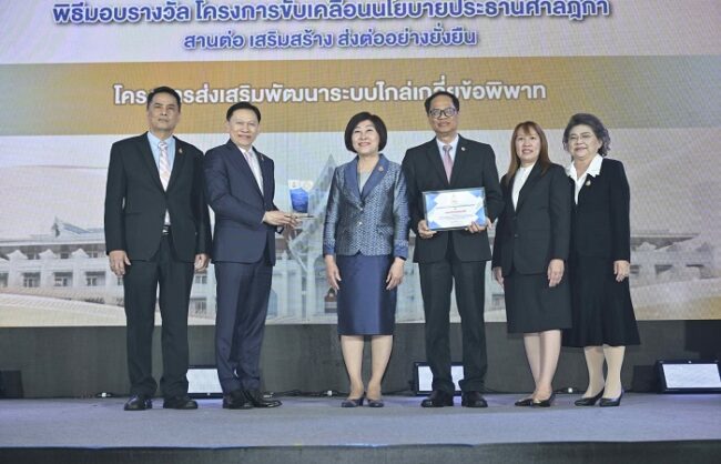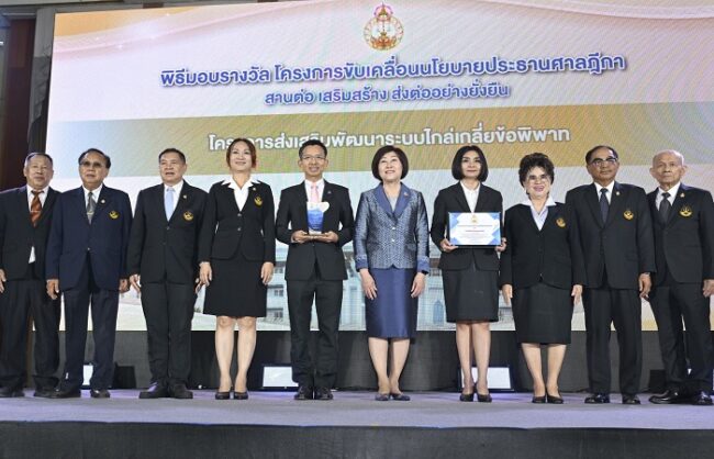 ทั้งนี้ ยังมีรางวัลศาลที่มีผลการไกล่เกลี่ยข้อพิพาทดีเด่น ซึ่งเป็นอีกหนึ่งโครงการสำคัญที่กำหนดขึ้นเพื่อขับเคลื่อนแนวนโยบายประธานศาลฎีกาสานต่อการระงับข้อพิพาททางเลือก โดยคำนึงถึงความเหมาะสมตามสภาพแวดล้อมทางเศรษฐกิจและสังคม รวมถึงบริบทของแต่ละศาลด้วย โดยกลุ่มศาลสูง 3 รางวัล ได้แก่ ศาลอุทธรณ์ภาค 8, ศาลอุทธรณ์ภาค 4, ศาลอุทธรณ์ภาค 7