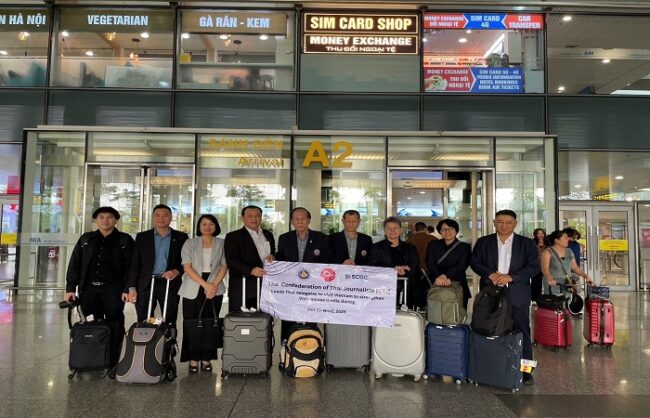 วันนี้ (29 ต.ค.68) นายนคร วีระประวัติ ประธานสมาพันธ์สื่อมวลชนแห่งประเทศไทย ได้นำคณะสื่อมวลชนไทยกระชับความสัมพันธ์กับสื่อมวลชนเวียดนาม ตามคำเชิญของสมาคมนักข่าวเวียดนาม ระหว่างวันที่ 29 ตุลาคม -2 พฤศจิกายน 2568 โดยมีผู้ร่วมคณะไปได้แก่ นายชวรงค์ ลิมป์ปัทมปาณี ที่ปรึกษา, น.ส.น.รินี เรืองหนู รองประธานคนที่ 1, นายอนันต์ นิลมานนท์ รองประธานคนที่ 4, นายดำฤทธิ์ วิริยะกุล เลขาธิการ, น.ส.ปิยสุดา จันทรสุข เหรัญญิก และ นายกฤษติน นิลมานนท์ เจ้าหน้าที่สมาพันธ์ฯ