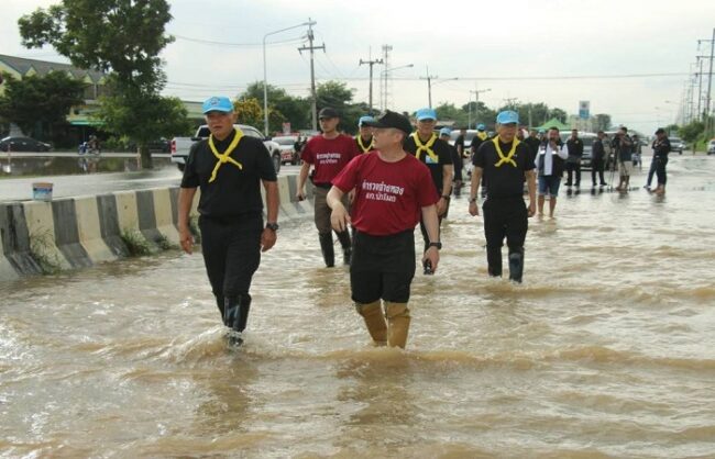 ต่อมาเวลา 15.00 น. พล.ต.ท.วัฒนา ยี่จีน ผบช.ภ.1 พร้อมคณะ ลงเรือตรวจเยี่ยมและมอบสิ่งของบำรุงขวัญให้ผู้ประสบอุทกภัย (ถุงยังชีพและยารักษาโรค) ณ อบต.ท่าดินแดง อ.ผักไห่ จ.พระนครศรีอยุธยา