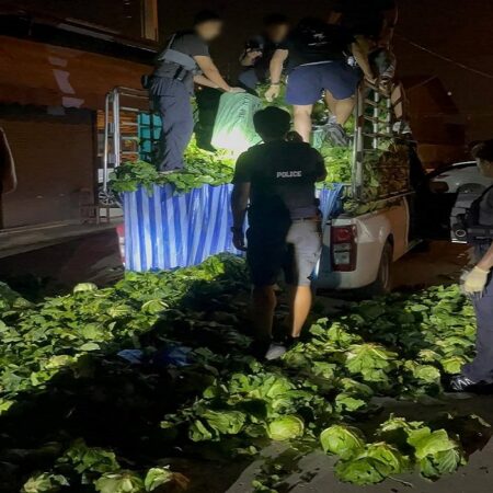 ต่อมาวันที่ 12 พ.ย. 68 เวลาประมาณ 23.15 น. เจ้าหน้าที่ตำรวจชุดจับกุม พบรถยนต์ดังกล่าวจากการแกะรอยเชิงลึกพบเดินทางมาจากภาคเหนือตรงตามการรวบรวมข้อมูลที่ได้จากขยายผลเครือข่ายตามที่ที่สืบสวนก่อนแสดงตัวเป็นเจ้าหน้าที่ตำรวจเพื่อขอทำการตรวจค้น พบผู้ขับขี่คือ นายจาย และ น.ส.หอม สัญชาติเมียนมาร์ นั่งผู้โดยสารพบผลการตรวจค้นรถยนต์คันดังกล่าว พบกระสอบซุกช่อนอยโดยใช้กระหล่ำปลีอำพรางยาเสพติดพบยาไอซ์และยาบ้าดังกล่าว จากการสอบสวนให้การรับสารภาพว่าได้ค่าจ้าง 20,000 บาท แบ่งกับเพื่อผู้หญิงโดยสารมาด้วยคนละ 10,000 บาท อ้างบอกทำเพียงครั้งแรกโดยรับจ้างคนสั่งการเป็นชาวสัญชาติลาว