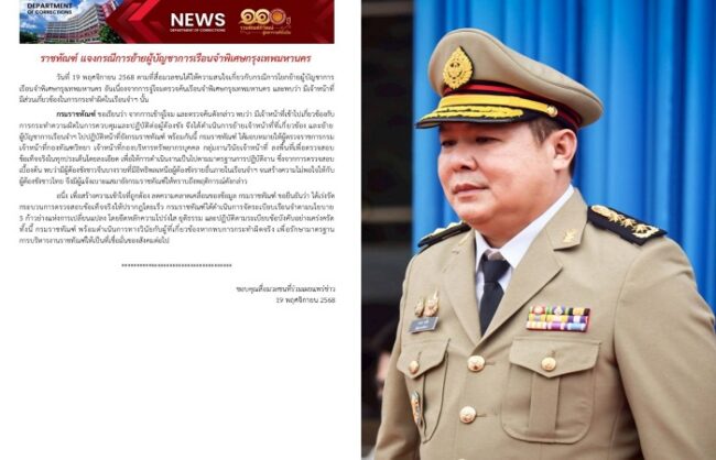 วันนี้ (19 พ.ย.68) ตามที่สื่อมวลชนได้ให้ความสนใจเกี่ยวกับกรณีการโยกย้าย ผู้บัญชาการเรือนจำพิเศษกรุงเทพมหานคร อันเนื่องจากการจู่โจมตรวจค้นเรือนจำพิเศษกรุงเทพมหานคร และพบว่า มีเจ้าหน้าที่ มีส่วนเกี่ยวข้องในการกระทำผิดในเรือนจำฯ นั้น