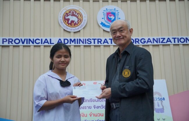วานนี้ (24 พ.ย.68) มูลนิธิป่อเต็กตึ๊ง นำโดย นายสุรพงษ์ เตชะหรูวิจิตร กรรมการและรองเลขาธิการ พร้อมด้วย นายนิพนธ์ ลีละศิธร กรรมการ และ นางสาวดวงชุตา ติยะพจนพรกุล ผู้ช่วยผู้จัดการฝ่ายสังคมสงเคราะห์ นำทีมแผนกส่งเสริมการศึกษาและอาชีพลงพื้นที่จังหวัดเชียงราย มอบทุนการศึกษาในระดับมัธยมศึกษาแก่นักเรียนในถิ่นทุรกันดาร รุ่นที่ 4 ครั้งที่ 1 ประจำปี 2568 ซึ่งเป็นการมอบทุนฯ ในรูปแบบต่อเนื่อง 3 ปี รวมจำนวน 60 ทุน รวมงบประมาณทั้งสิ้น 450,000 บาท (สี่แสนห้าหมื่นบาทถ้วน) โดยมี นายวีระยุทธ คีลาวงค์ รองผู้อำนวยการโรงเรียนองค์การบริหารส่วนจังหวัดเชียงราย พร้อมด้วยผู้บริหารสถานศึกษา อีก 20 แห่ง คณะครู อาจารย์ และผู้แทนนักเรียนจากโรงเรียน ร่วมในพิธี ณ หอประชุมโรงเรียนองค์การบริหารส่วนจังหวัดเชียงราย อ.เมือง จ.เชียงราย