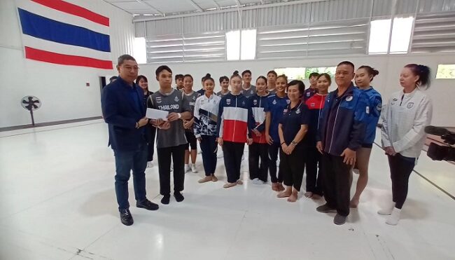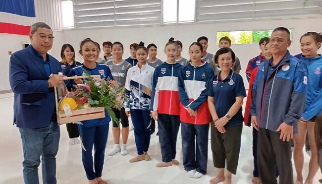 “ยิมนาสติก” โชว์ความเข้มแข็งผสมผสานสนุกสนาน ให้คณะของ ดร.ณัฏฐ์ ธีรณัฐสุภานนท์ ประธานมูลนิธิกองทุนพัฒนาการกีฬา ได้ชมพร้อมย้ำชัดเป้าหมาย 5 เหรียญทอง