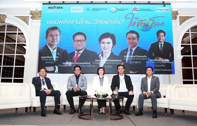 ส่วนหัวข้อปิดท้ายนั้น ทางสมาคมพลังงานลมฯ ได้จับมือกับพันธมิตรในแวดวงพลังงาน อาทิ ดร.อารีพร อัศวินพงศ์พันธ์ นักวิชาการนโยบายพลังงาน สถาบันวิจัยเพื่อการพัฒนาประเทศไทย (TDRI), คุณอาทิตย์ เวชกิจ นายกสมาคมพลังงานหมุนเวียนไทย (RE100), คุณชัพมนต์ จันทรพงศ์พันธุ์ นายกสมาคมอุตสาหกรรมเซลล์แสงอาทิตย์ไทย, คุณศุภฤกษ์ ยิ้มกอบกิจ นายกสมาคมการค้าก๊าซชีวภาพไทย และ คุณวัชรพงศ์ เข็มแก้ว นายกสมาคมพลังงานลมฯ เป็นผู้ดำเนินรายการ ได้ร่วมเสวนา ในหัวข้อ “แผนพลังงานไทย..วิ่งอย่างไร? ให้ทันโลก” โดยวัตถุประสงค์หลัก มุ่งเน้นการเรียกร้องและเร่งรัดให้ทางภาครัฐจัดทำและประกาศใช้แผนพลังงานชาติ (NEP) ภายในปี 2568 โดยต้องมีกรอบที่ยึดหยุ่นและการทบทวนทุก ๆ 2 ปี เพื่อรับมือการเปลี่ยนแปลงของเทคโนโลยีและเศรษฐกิจ แผน NEP ควรมีเป้าหมายระยะสั้น (5 ปี) เน้นความสามารถในการแข่งขัน และเป้าหมายระยะยาวที่สอดคล้องกับการลดก๊าซเรือนกระจก Nationally Determined Contribution (NDC) ซึ่งตัวเลขของ Direct PPA 2,000 เมกะวัตต์ ถือเป็นโอกาสทองในการเปิดเสริไฟฟ้า แต่ควรแบ่งสัดส่วนให้แก่ผู้ผลิตไฟฟ้ารายเก่าด้วย เพื่อสร้างความเป็นธรรมและส่งเสริมการใช้พลังงานหมุนเวียนอย่างยั่งยืน