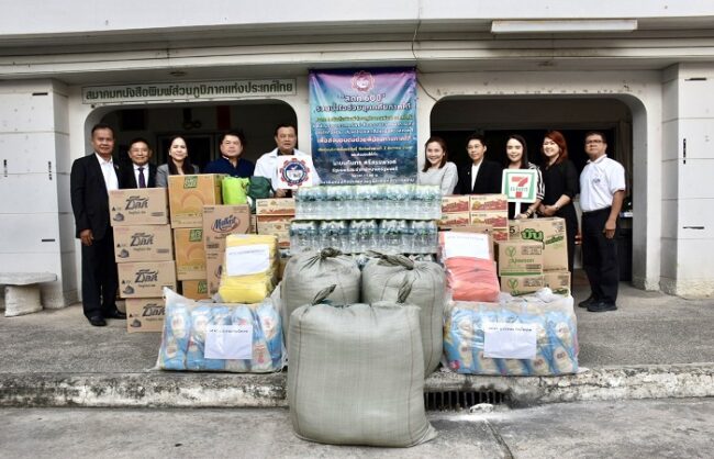 สมาคมหนังสือพิมพ์ส่วนภูมิภาคแห่งประเทศไทย (สภท.60 ปี) ได้เปิดรับบริจาคเฉพาะในกลุ่มสมาชิกและผู้ที่รู้จักคุ้นเคย เพื่อร่วมกันบรรเทาความเดือดร้อนของผู้ประสบภัยในครั้งนี้ โดยสิ่งของทั้งหมดจะถูกส่งมอบผ่าน ดร.นภินทร ศรีสรรพางค์ รัฐมนตรีประจำสำนักนายกรัฐมนตรี ซึ่งมอบหมายให้ ดร.วีณา ศรีสรรพางค์ ประธานที่ปรึกษาชมรมชาวใต้ราชบุรี เป็นผู้แทนรับมอบสิ่งของดังกล่าว และเพื่อจัดส่งต่อด้วยรถบรรทุกของตลาดศรีเมืองราชบุรี ไปยังพื้นที่ประสบภัยในภาคใต้