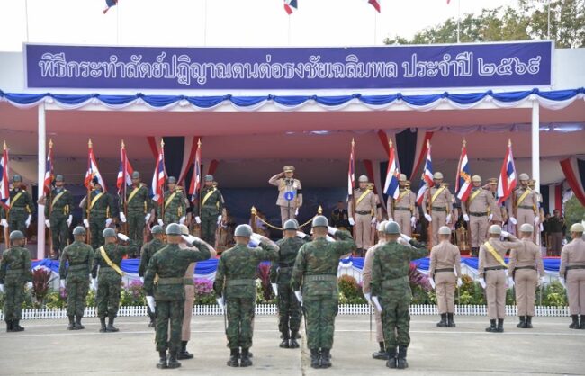 พล.ร.อ.ไพโรจน์ เฟื่องจันทร์ ผู้บัญชาการทหารเรือ (ผบ.ทร.) เป็นประธานในพิธีกระทำสัตย์ปฏิญาณตนต่อธงชัยเฉลิมพล เนื่องในวันกองทัพไทย ประจำปี 2569 ในส่วนของกองทัพเรือ พื้นที่สัตหีบ ณ ลานสวนสนาม หน่วยบัญชาการต่อสู้อากาศยานและรักษาฝั่ง อ.สัตหีบ จ.ชลบุรี โดยพิธีนี้จัดให้มีขึ้น เพื่อน้อมรำลึกถึงพระมหากรุณาธิคุณของสมเด็จพระนเรศวรมหาราช และเพื่อให้ทหารใหม่ทุกนายกระทำสัตย์ปฏิญาณตนต่อธงชัยเฉลิมพล อันถือเป็นเครื่องหมายแทนองค์พระมหากษัตริย์ ผู้ทรงเป็นจอมทัพที่เสมือนเสด็จพระราชดำเนินมาประทับเป็นหลักชัย อยู่ท่ามกลางเหล่าทหารทั้งปวง อีกทั้งยังเป็นเครื่องหมายของสามสถาบันหลัก คือ ชาติ ศาสนา และ พระมหากษัตริย์ อันเป็นปัจจัยสำคัญของบ้านเมือง ที่ทหารจักต้องรักษาไว้เพื่อประโยชน์สุขแห่งประเทศชาติและประชาชน