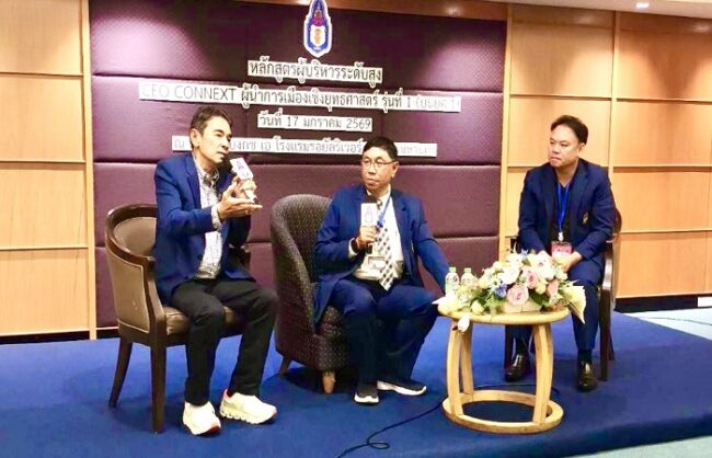 หลักสูตรผู้บริหารระดับสูง CEO CONNEXT ผู้นำการเมืองเชิงยุทธศาสตร์ รุ่นที่ 1 (บนยศ.1) จัดการบรรยายพิเศษ โดยศาสตราจารย์พิเศษ ธงทอง จันทรางศุ นายกสภามหาวิทยาลัยสุโขทัยธรรมาธิราช ในหัวข้อ “ผมคิดอย่างไรกับวันที่ 8 กุมภาพันธ์ 2569” ถ่ายทอดมุมมองทางการเมืองอย่างตรงไปตรงมา ท่ามกลางความสนใจของผู้เข้าอบรมอย่างคึกคัก ณ โรงแรมรอยัลริเวอร์ กรุงเทพมหานคร