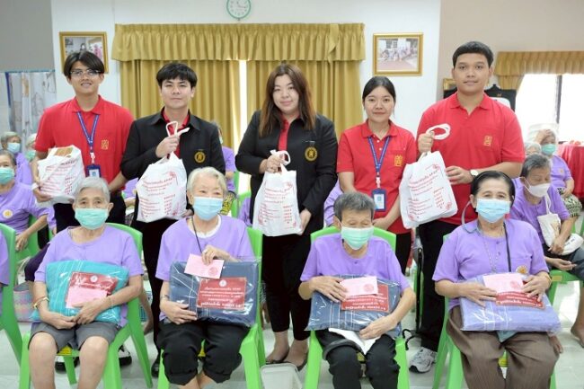 และมอบชุดของขวัญ ประกอบด้วย ผ้าขนหนูเช็ดตัว นมถั่วเหลือง แป้งเย็น น้ำส้มชนิดกล่อง ขนม และ ครีมทาผิวแก่ผู้สูงอายุในสถานสงเคราะห์ (ไทย-จีน) ประกอบด้วย สถานสงเคราะห์คนชราปากน้ำ (มูลนิธิวัยวัฒนานิวาส) จังหวัดสมุทรปราการ สถานสงเคราะห์คนชราบางเขน (มูลนิธิธารนุเคราะห์) กรุงเทพมหานคร สถานสงเคราะห์คนชราปทุมธานี (มูลนิธิมิตรภาพสงเคราะห์) จังหวัดปทุมธานี สถานสงเคราะห์คนชราบ้านธรรมปกรณ์ (วัดม่วง) จังหวัดนครราชสีมา และสถานสงเคราะห์คนชราบ้านธรรมปกรณ์ (โพธิ์กลาง) จังหวัดนครราชสีมา รวม 5 แห่ง 4 จังหวัด รวม 340 คน