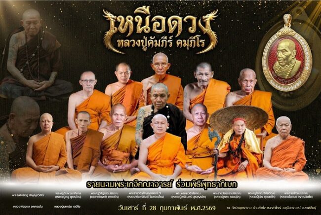 พิธีพุทธาภิเษกพิธีใหญ่ (วาระ 4) วันที่ 28 ก.พ.69 มี พระเดชพระคุณพระพรหมวชิรโสภณ (หลวงปู่ศรีจันทร์ ปุญฺญรโต) ที่ปรึกษาเจ้าคณะภาค 10 (ธ.) และ พระเถราจารย์ ร่วมนั่งปรกอธิษฐานจิตอีกมากมาย กำหนดการณ์ดังนี้