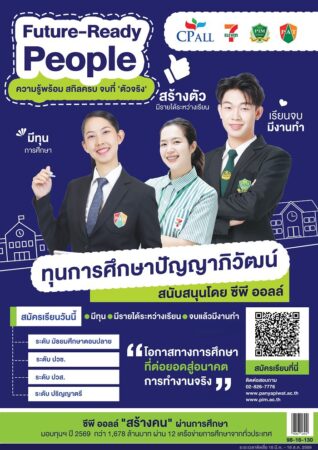 โอกาสเปลี่ยนชีวิต! “ซีพี ออลล์” สนับสนุนทุนเรียนฟรี พร้อมรายได้ระหว่างเรียน ผ่านสถาบันการศึกษาในเครือข่ายปัญญาภิวัฒน์ สร้างคนรุ่นใหม่สู่โลกงานจริงอย่างมั่นใจ “เรียนฟรี มีรายได้ จบแล้วมีงานทำ” ไม่ใช่แค่คำโฆษณา แต่คือโอกาสจริงที่ “ซีพี ออลล์” ตั้งใจมอบให้กับคนรุ่นใหม่ทั่วประเทศ