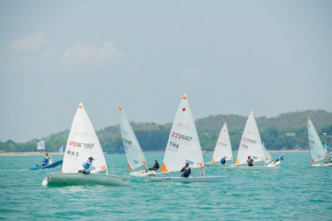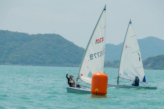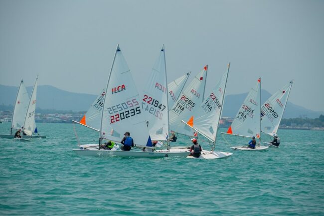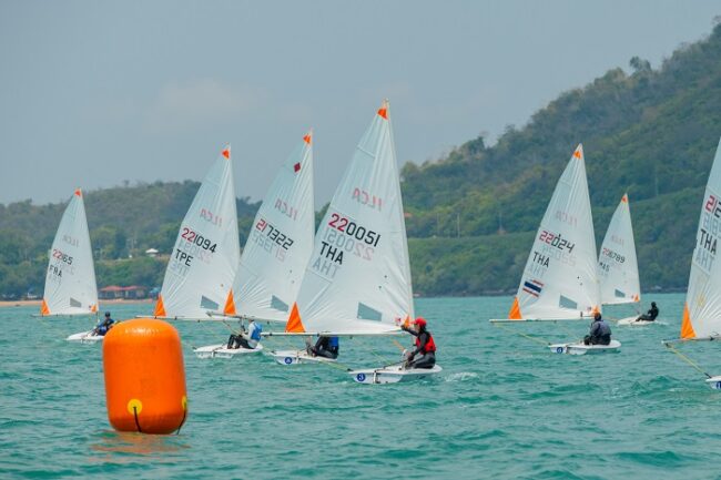 เรือใบประเภท ILCA 6 วันนี้ทำการแข่งขัน 3 เที่ยว รวมกับวานนี้ 3 เที่ยว เป็นทั้งหมด 6 เที่ยว