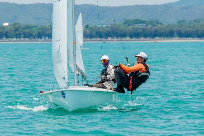 ลำดับที่ 2 นายศราวุฒิ ภารพิบูลย์ นายเรือ และ เด็กชายภาณุเดช ผลพูล สังกัด สมาคมกีฬาแข่งเรือใบแห่งประเทศไทยฯ แต้มเสีย 20