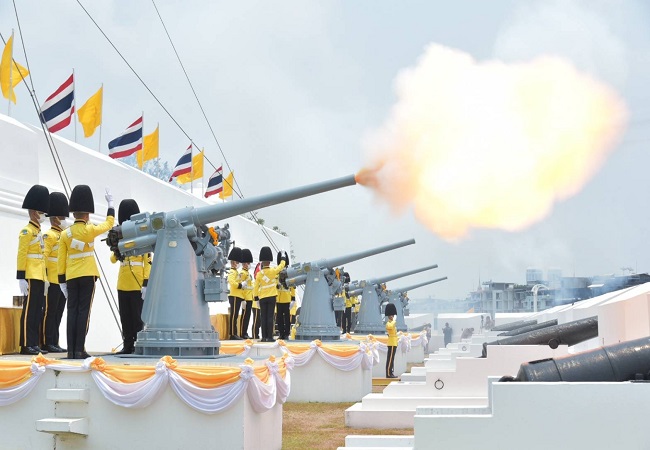กองทัพเรือ ยิงสลุตหลวง ด้วยปืนใหญ่จำนวน 21 นัด เฉลิมพระเกียรติ พระบาทสมเด็จพระเจ้าอยู่หัว …
