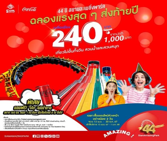 สยามอะเมซิ่งพาร์ค X โค้ก ลดแรงปังเวอร์ เที่ยวทั้งวันเพียง 240.- ฉลอง “44 ปี สยามอะเมซิ่งพาร์ค”