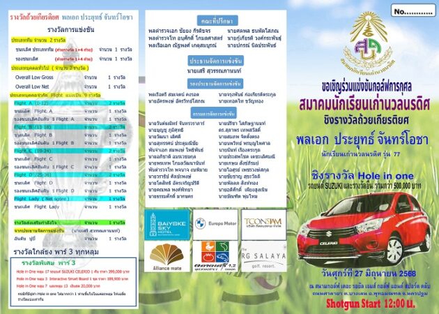 สมาคมนักเรียนเก่านวลนรดิศ ขอเชิญร่วมการแข่งขันกอล์ฟการกุศล ชิงถ้วยเกียรติยศ พลเอก ประยุทธ์…