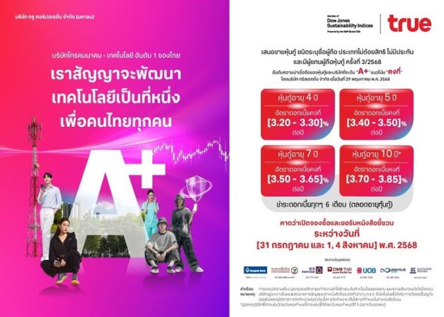 “ทรู คอร์ปอเรชั่น” เตรียมเสนอขายหุ้นกู้ชุดใหม่ ชูเครดิต “A+” ตอบโจทย์นักลงทุนที่มองหาโอกาส…