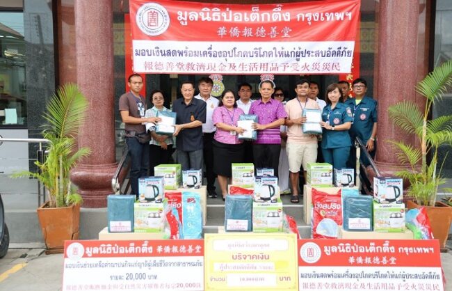 มูลนิธิป่อเต็กตึ๊ง รุดลงพื้นที่ซับน้ำตา เยียวยาผู้ประสบอัคคีภัย บริเวณตำบลท่าประดู่ อำเภอเ…